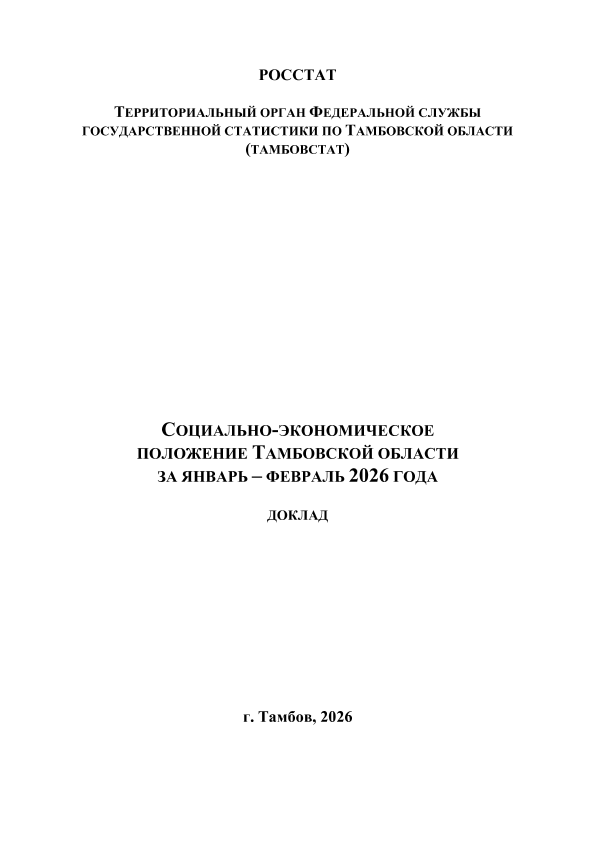 Социально-экономическое положение Тамбовской области: доклад / Росстат ; Территориальный орган Федеральной службы государственной статистики по Тамбовской области (Тамбовстат). — Тамбов: [Издательский центр Тамбовстата], 2014-.