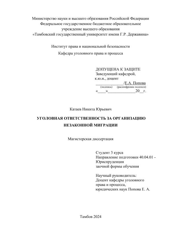 НЕЗАКОННОЙ МИГРАЦИИ [Электронный ресурс]: магистерская диссертация: 40.04.01 Юриспруденция: Уголовное право, криминология,