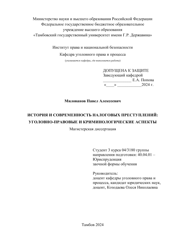 МИЛОВАНОВ, ПАВЕЛ АЛЕКСЕЕВИЧ. ИСТОРИЯ И СОВРЕМЕННОСТЬ НАЛОГОВЫХ ПРЕСТУПЛЕНИЙ: