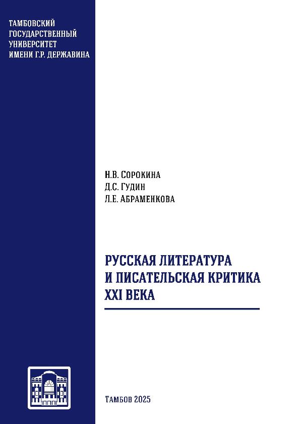Сорокина, Н. В. Русская литература и писательская критика XXI века: учебное пособие / Н. В. Сорокина, Д. С. Гудин, Л. Е. Абраменкова; Министерство науки и высшего образования РФ, Тамбовский государственный университет имени Г. Р. Державина. — Тамбов: Издательский дом «Державинский», 2025 — 1 файл (2,27 Мб). — Загл. с тит. экрана. — Режим доступа: для авторизир. пользователей. — <URL:https://elibrary.tsutmb.ru/dl/docs/elib2066.pdf>.