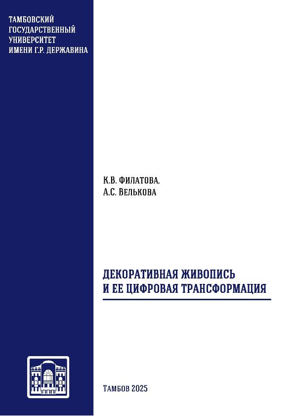 Филатова, К. В. Декоративная живопись и ее цифровая трансформация: учебно-методическое пособие / К. В. Филатова, А. С. Велькова; Министерство науки и высшего образования РФ, Тамбовский государственный университет имени Г. Р. Державина. — Тамбов: Издательский дом «Державинский», 2025 — 1 файл (18,1 Мб). — Загл. с тит. экрана. — Режим доступа: для авторизир. пользователей. — <URL:https://elibrary.tsutmb.ru/dl/docs/elib2087.pdf>.